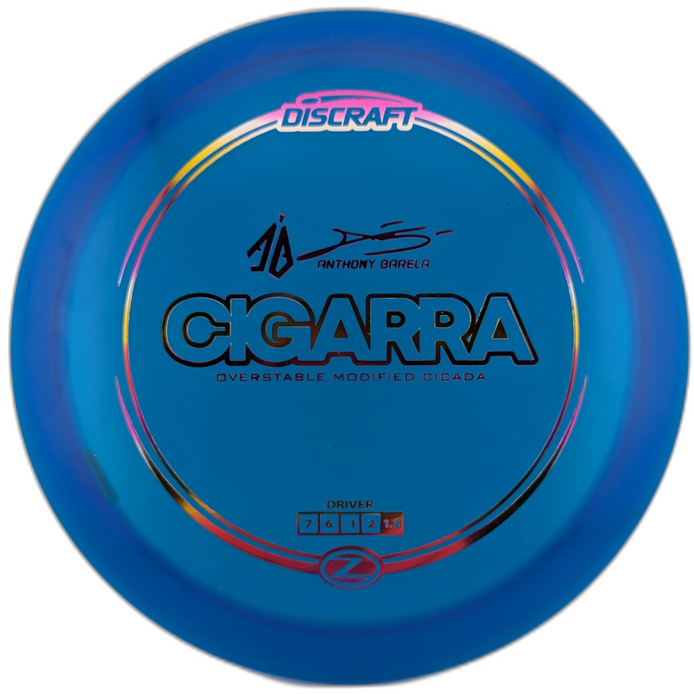 The Discraft Cigarra is an overstable evolution of the Cicada, designed in collaboration with Anthony Barela for players seeking more power, control, and distance. As Barela’s first signature disc with Discraft, the Cigarra delivers enhanced stability, allowing throwers to confidently attack lines with increased torque resistance. Built for those who push their limits, this disc offers the perfect balance of reliability and speed.