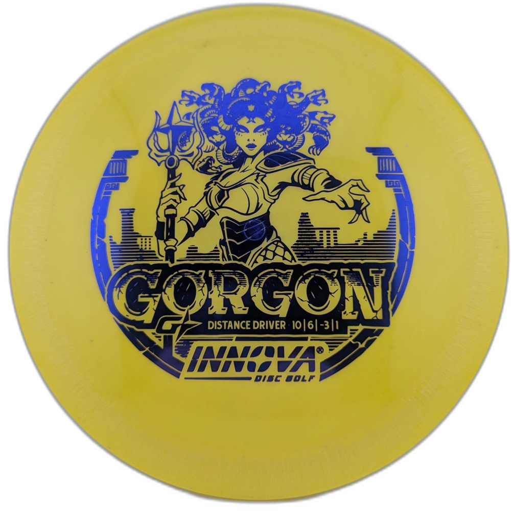 Introducing the Innova Gorgon, the disc that blends the precision and control of a Fairway Driver with the impressive reach of a Distance Driver. Its flight is characterized by an arrow-straight glide and a reliable fade, embodying the unwavering gaze of the mythical Gorgon. Experience legendary performance—drive like a deity and conquer the course with the Gorgon.