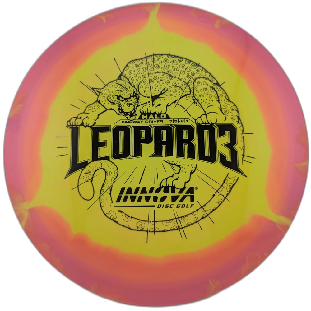 The Innova Leopard3 is the faster, less glidey version of the popular Innova Leopard. This disc has a nice controllable turn right out of the box. With a smooth throw the Leopard3 will fly laser straight. With power, this disc will turn hard and finish right (with a right hand backhand throw).