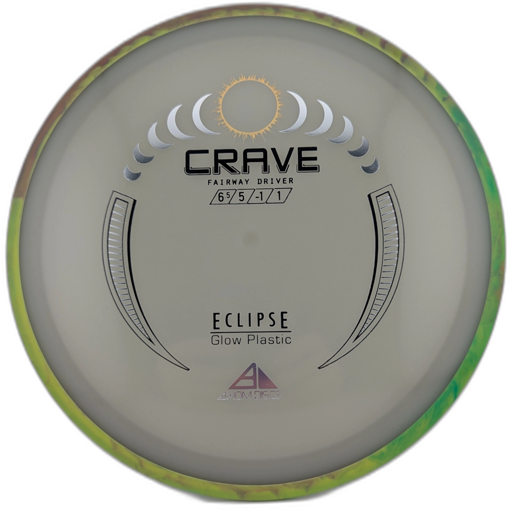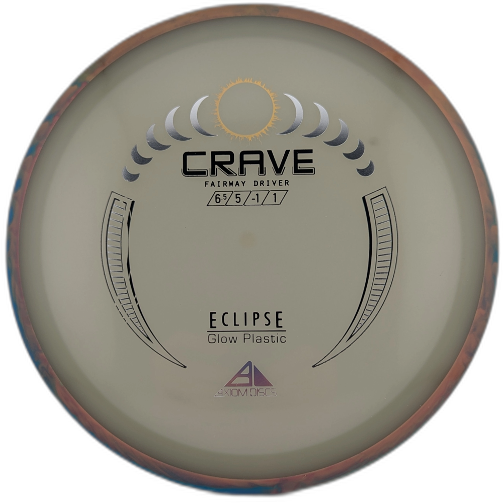 By far one of the most requested discs by GYROnauts around the world. The Eclipse Crave has officially returned as a stock release! The Eclipse Crave maintains the smooth hand feel, and straight, controllable flight that the Crave is known for. Here to give your bag a glow up. High power players will continue to find the Crave to be an incredibly workable disc. Lower power players will get a nice straight to slightly understable flight with a forward pushing fade. Carve lines in the daylight or Cruise through the course during an evening round when you reach for the Eclipse Crave!