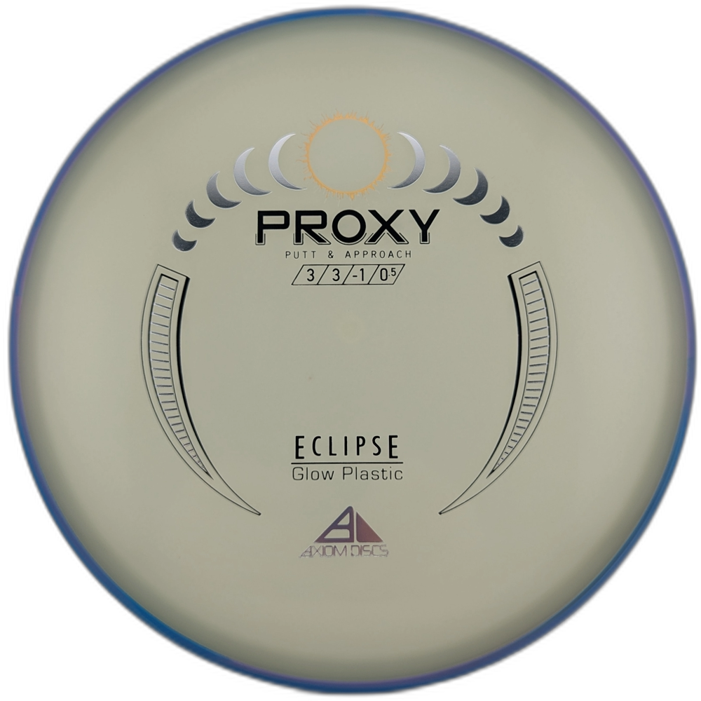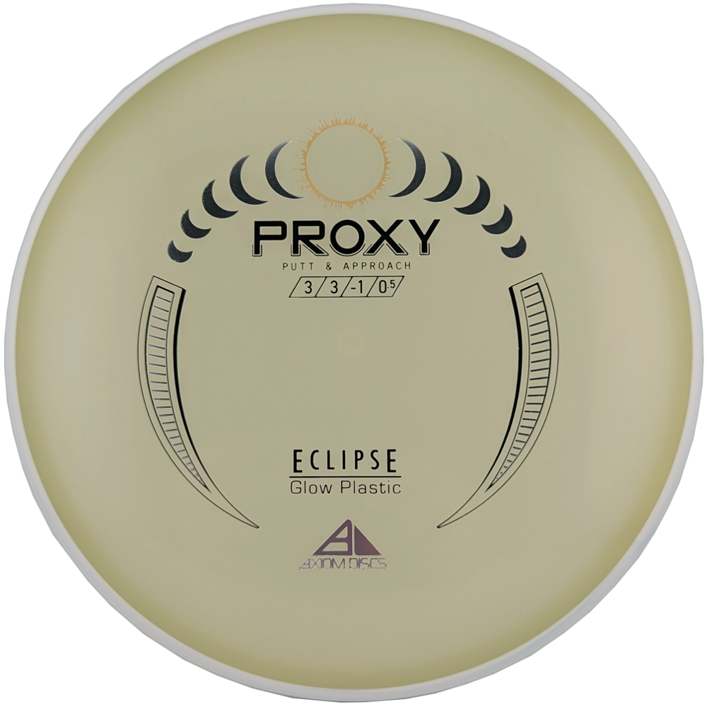 The Proxy from is the straightest flying putter that Axiom Discs produces. Disc Golf Pro Simon Lizotte proves the utility of this disc as his go-to throwing putter and approach disc from all distances. The Proxy shares the Envy mould’s core, lending the same low-profile feel and solid grip, along with a short wing width and wide flight plate diameter for superior glide. This discs sets itself apart from the Envy with a remarkably straight forward-fading finish. Players can achieve excellent hyzer flip ups, panning anhyzers, as well as dead-straight shots with little-moderate power required. This disc is perfect as a first approach disc when you need something reliable to get near your target.