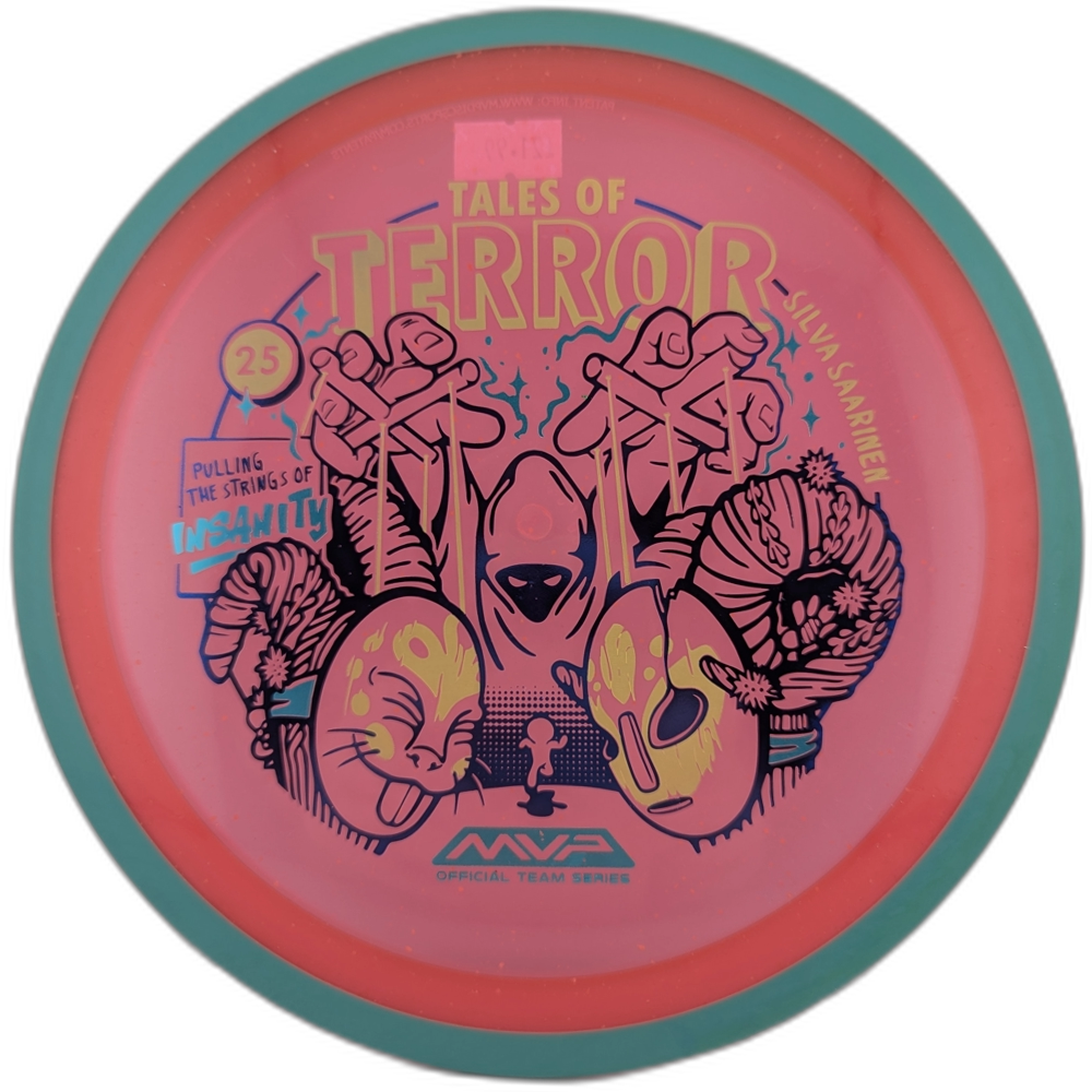 Beware the one pulling the strings during the Finnish Harvest Festival! Stamp newcomer Damian White unveils his first MVP stamp for this Halloween comic inspired design on the Particle Proton Insanity, a warning that some ornaments created for this event are a bit more ghoulish than they appear. The Insanity is a stable-understable driver that players will find easy to manipulate, with average power throws being remarkably straight with forward pushing fade, and higher power throws resulting in precise hyzer-flips, turnovers, and beautiful s-lines. Don’t let the course pull your strings – grab a Particle Proton Insanity today and prove who the true master is.
