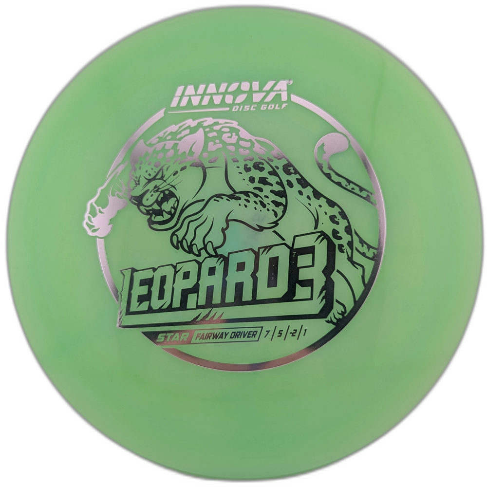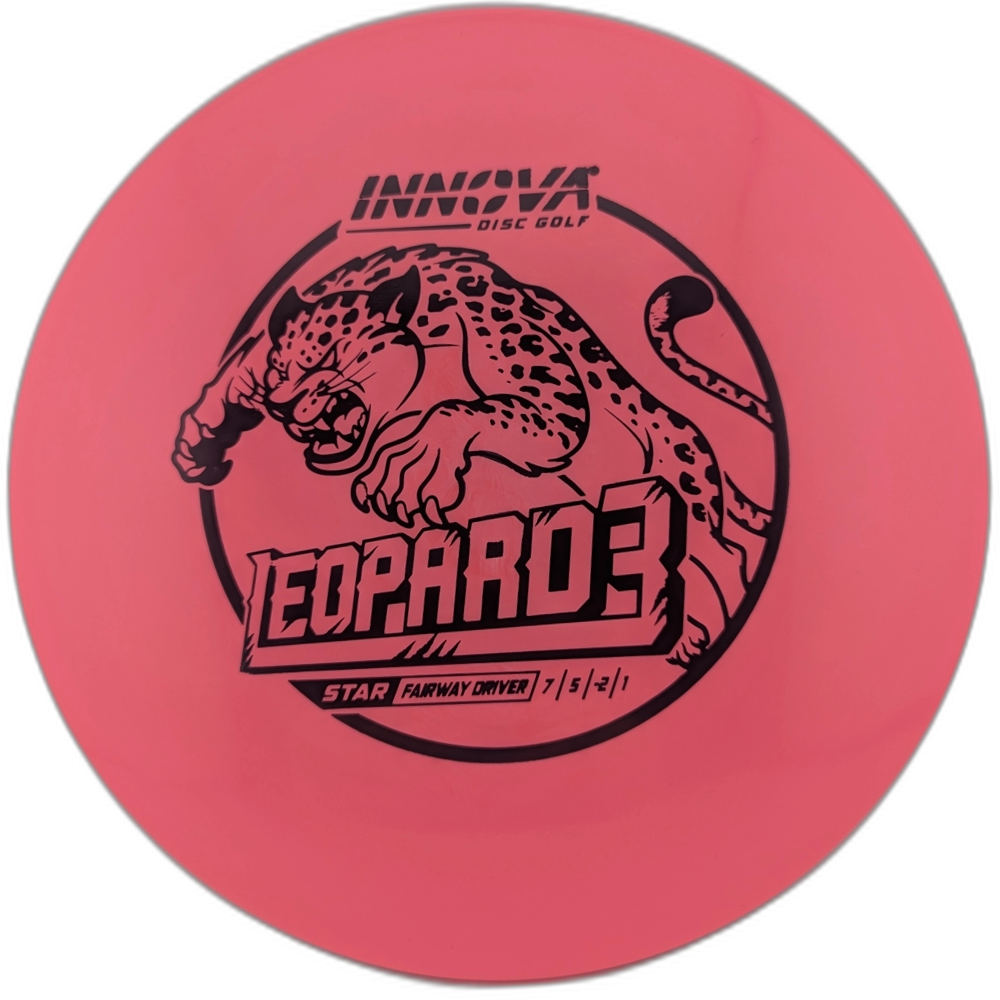 The Innova Leopard3 is the faster, less glidey version of the popular Innova Leopard. This disc has a nice controllable turn right out of the box. With a smooth throw the Leopard3 will fly laser straight. With power, this disc will turn hard and finish right (with a right hand backhand throw).