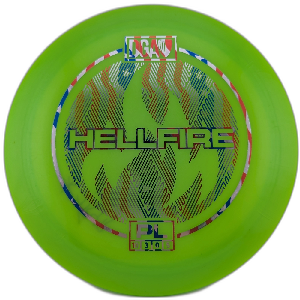 The DGA Hellfire is a massively overstable meathook fairway driver with very little glide. This is a utility disc designed for overhand shots, powerful flex lines, and getting out of trouble. This disc also excels in even the strongest headwind.