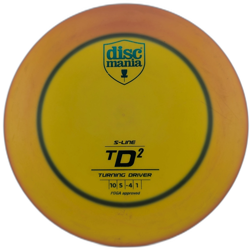 The Discmania TD2 lets the thrower experience the full flight of the disc even at lower launch speeds. The TD2 is a very understable driver with high glide ratio, so that it stays in the air noticeably longer, giving the extra distance to those who hunger for it. Advanced players can exploit these features in roller shots or long turnovers.