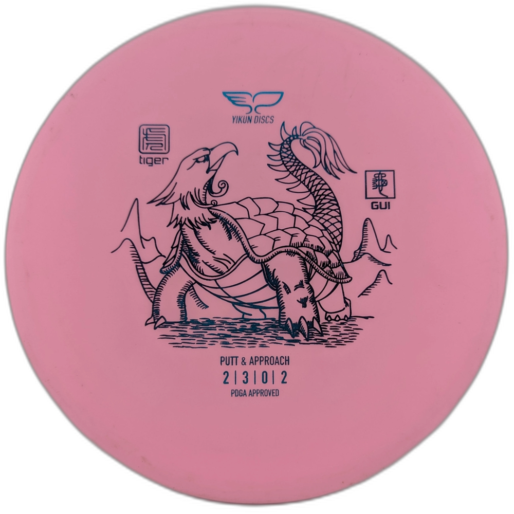 The Gui is a beadless overstable putter with a flat top, deep rim, and unique slip-resistant grip plates on the bottom flight plate. This is a very comfortable putt & approach disc that is very similar to the Discmania Tiger Warrior.