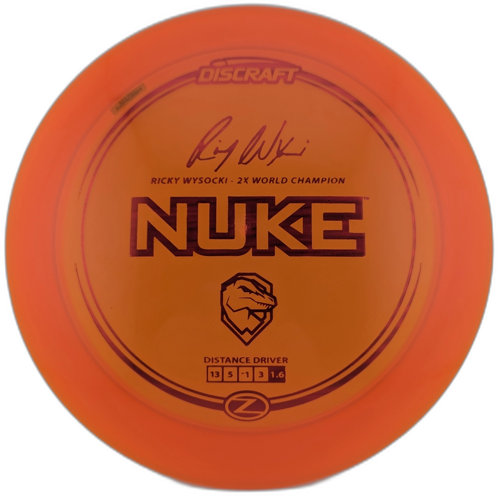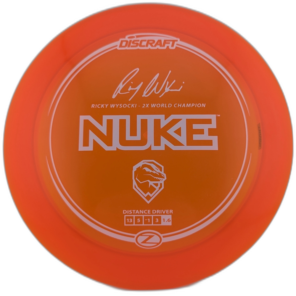 The Nuke is one of the longest discs in the game and has insane power. The Nuke is a 13-speed driver that is the preferred long-range driver for Ricky Wysocki. The Nuke is a straight flying, high speed driver and was designed with advanced players in mind. This yin-yang Darkhorse design incorporates a double foil with some sweet swirls and was ran in Z Swirl plastic.